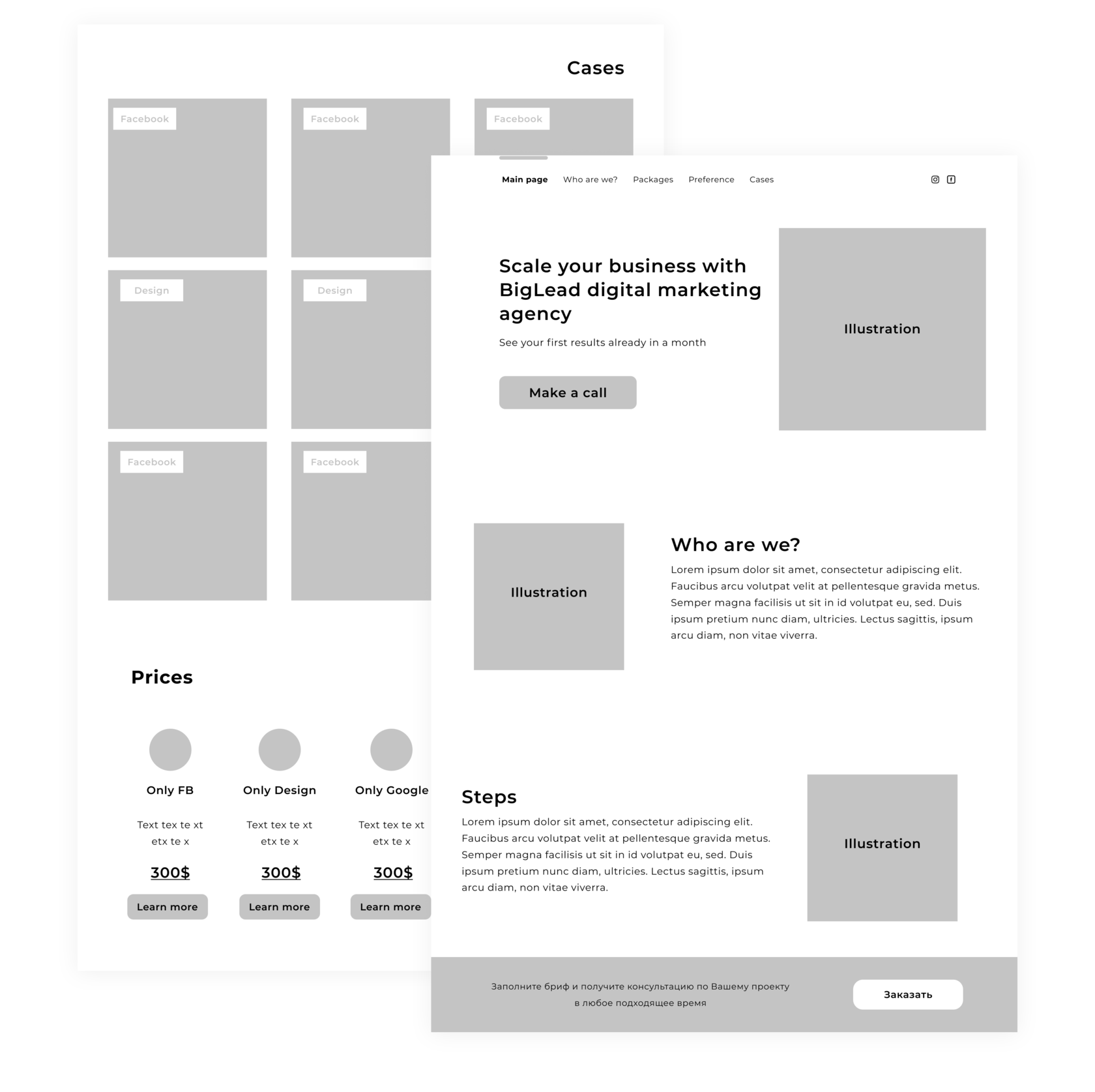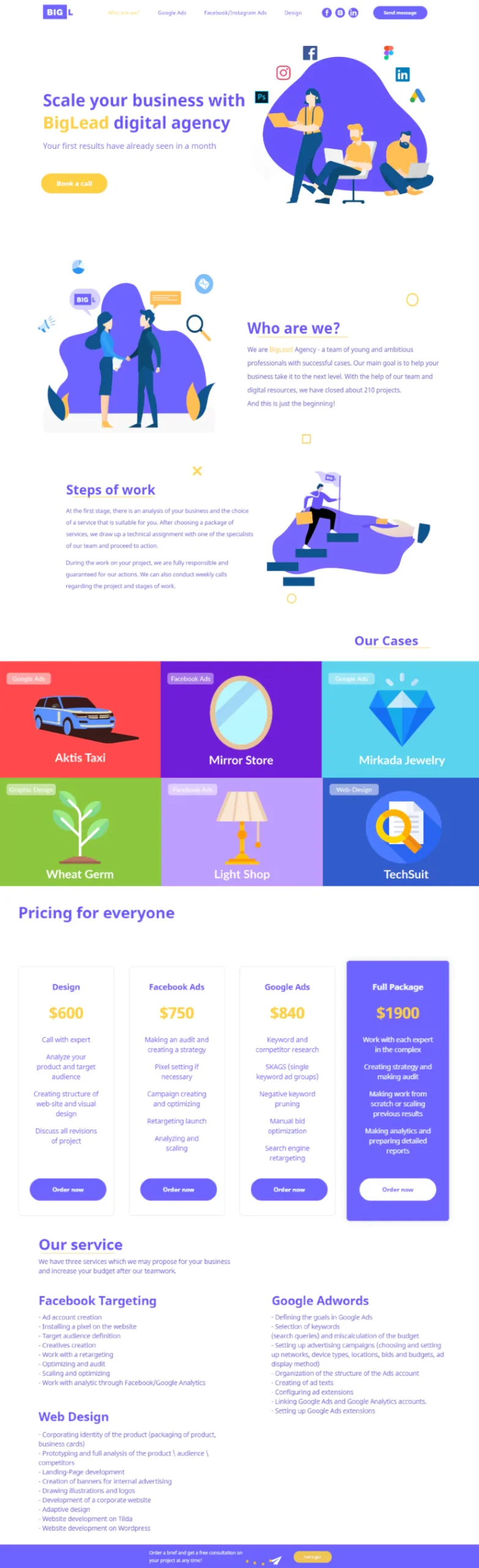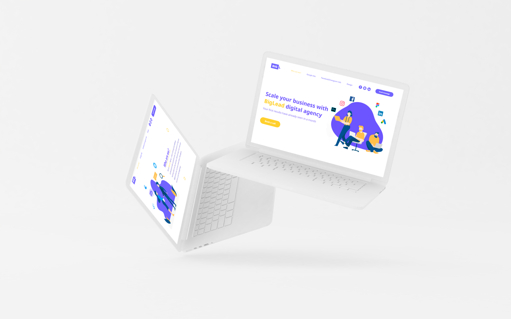Було поставлено завдання розробити дизайн сайту для digital-агентства BigLead. Агентство надає свої послуги в різних галузях IT – контекстна реклама, таргетована реклама та веб-дизайн.