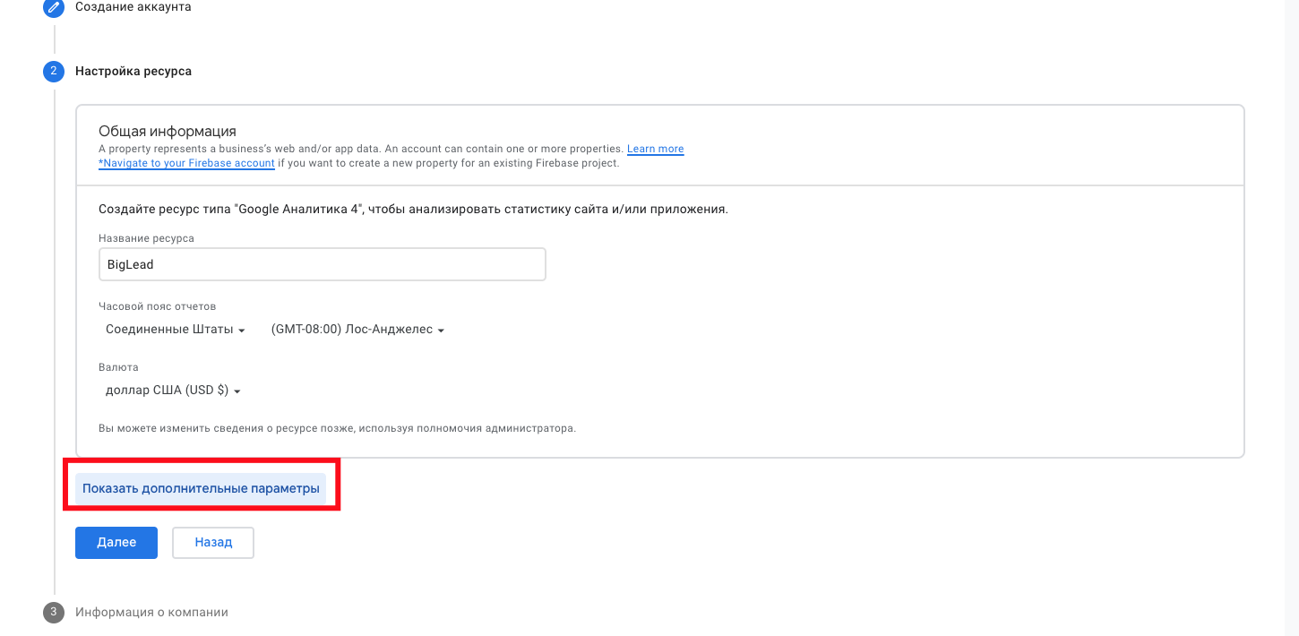 4) Вказуємо “назву ресурсу” та відкриваємо плашку “показати додаткові параметри”