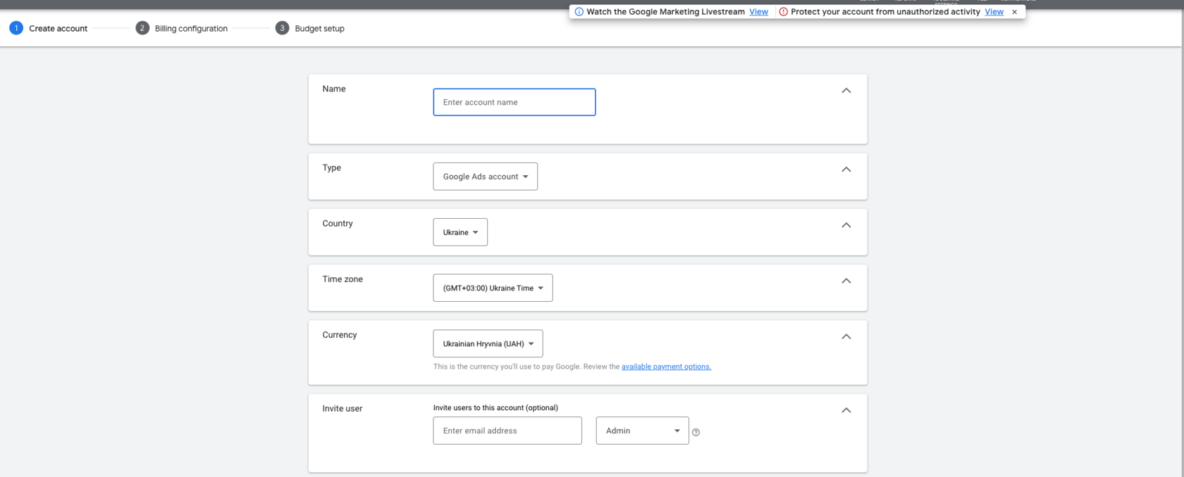 Покрокова інструкція з налаштування облікового запису в Google Ads