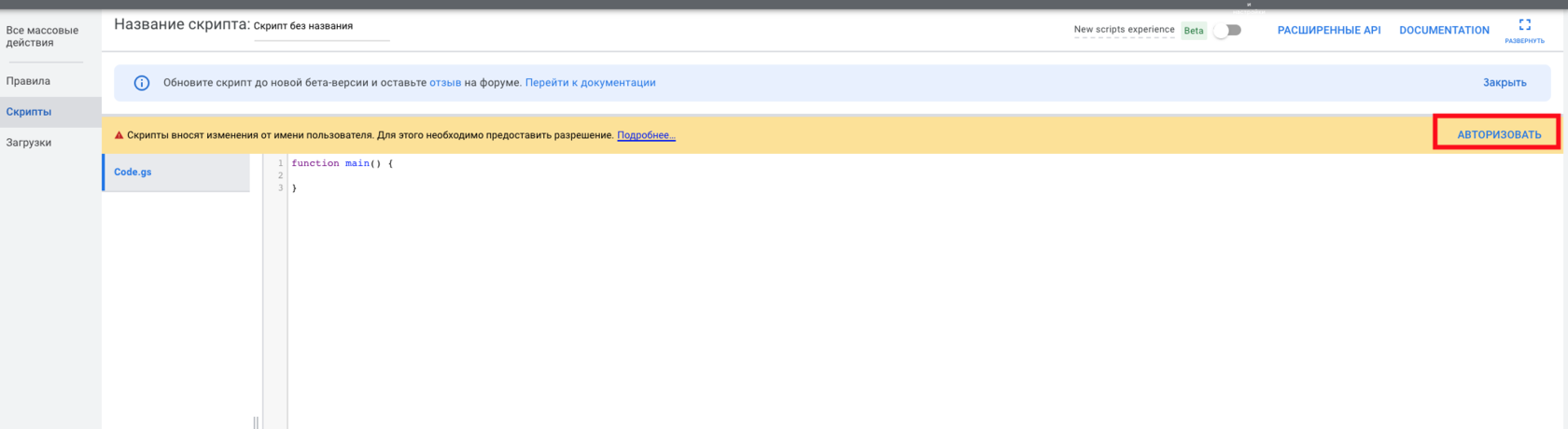 4) Для того, щоб додати скрипт, необхідно авторизуватись